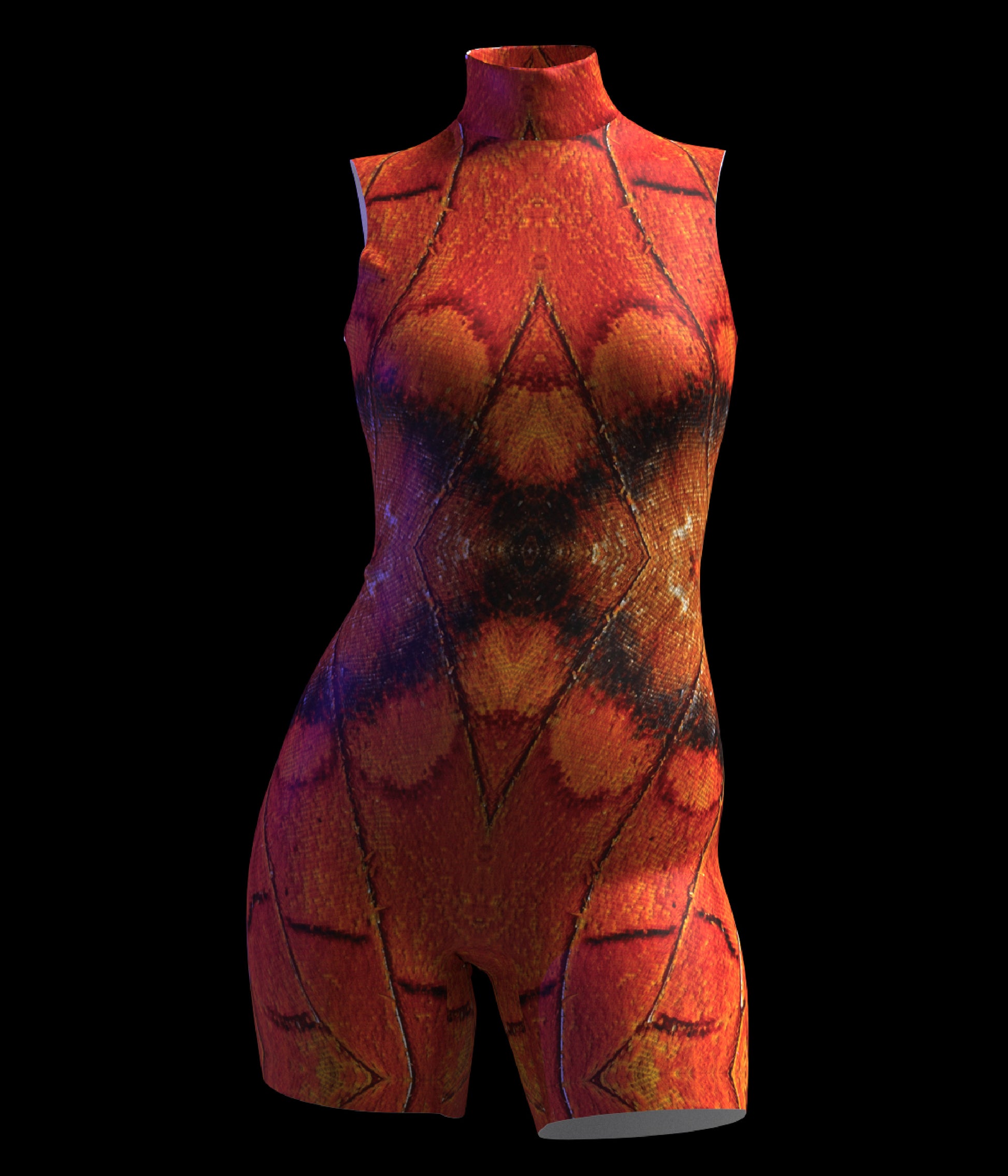 Designed, printed, cut, and sewn in the USA. Fully saturated dye-sublimation holds its color unlike imitation products that become less vibrant when you wear them. We use a rich, premium 4-way stretch fabric (82% poly, 18% spandex) that has a light sheen and takes color beautifully. Mock neck. Reinforced seams. Hidden back zipper.