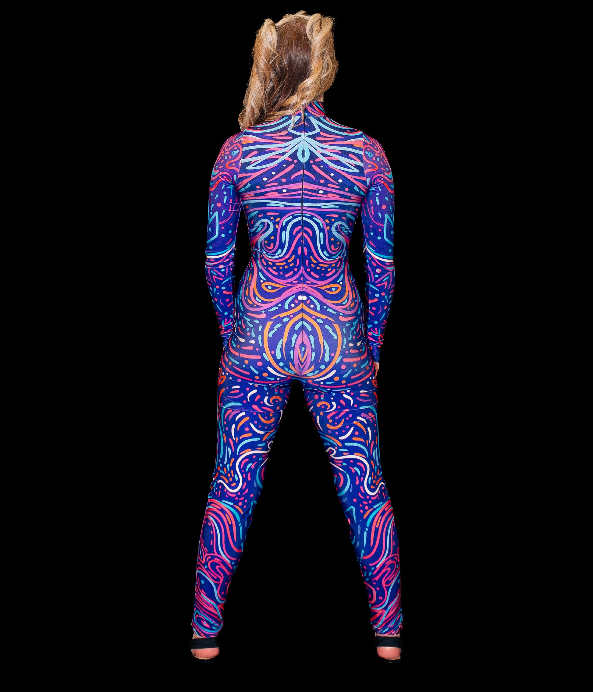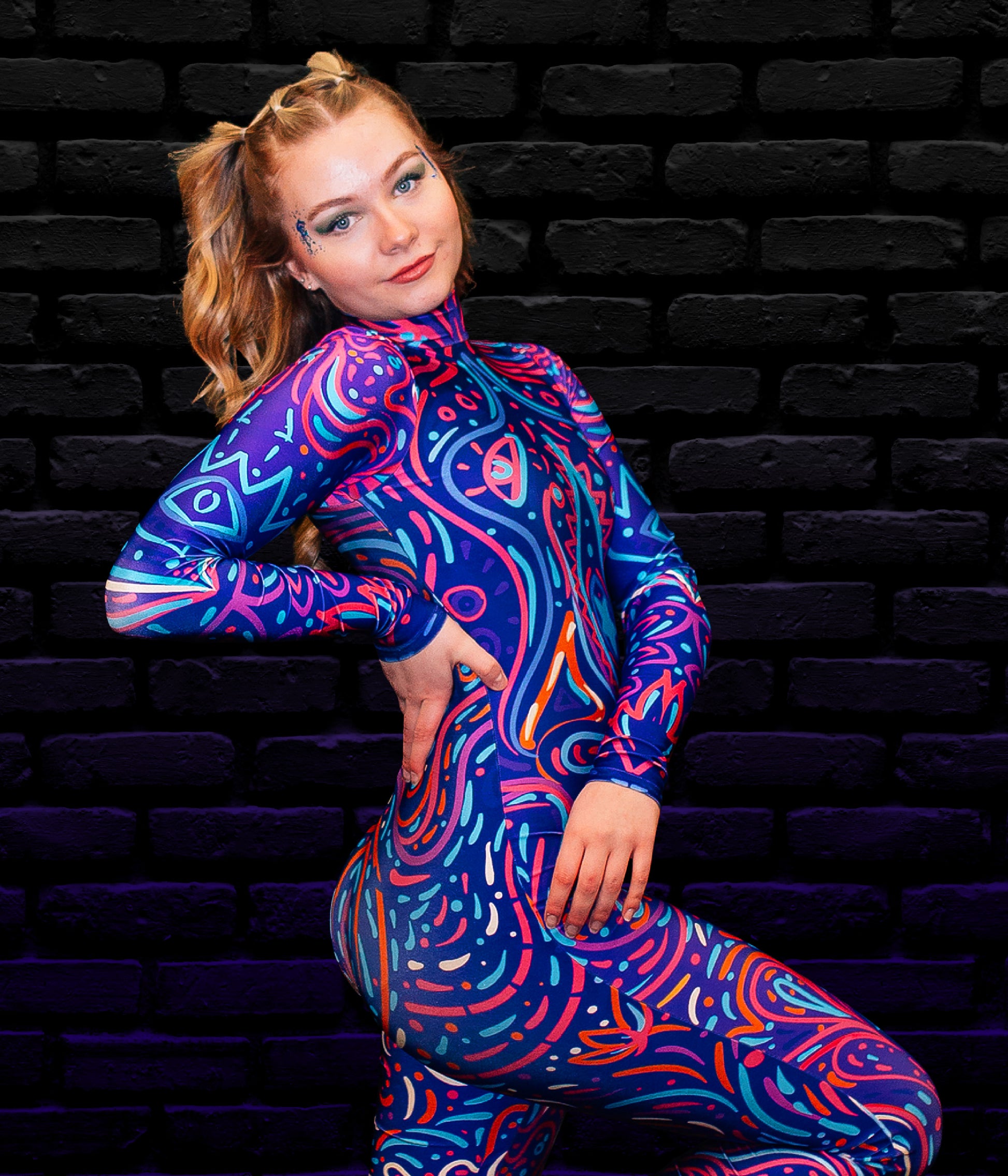 The EPIC Bodysuit is the perfect garment for all rave-goers and partiers. Made from our premium four-way stretch fabric, this bodysuit is incredibly comfortable and breathable, allowing you to move freely and express yourself without restriction. With a flattering fit in 11 sizes and a variety of designs, we've got you and your squad covered. Whether you're going to an EDM festival, a club, or just a house party, the EPIC Bodysuit is the perfect addition to your wardrobe.