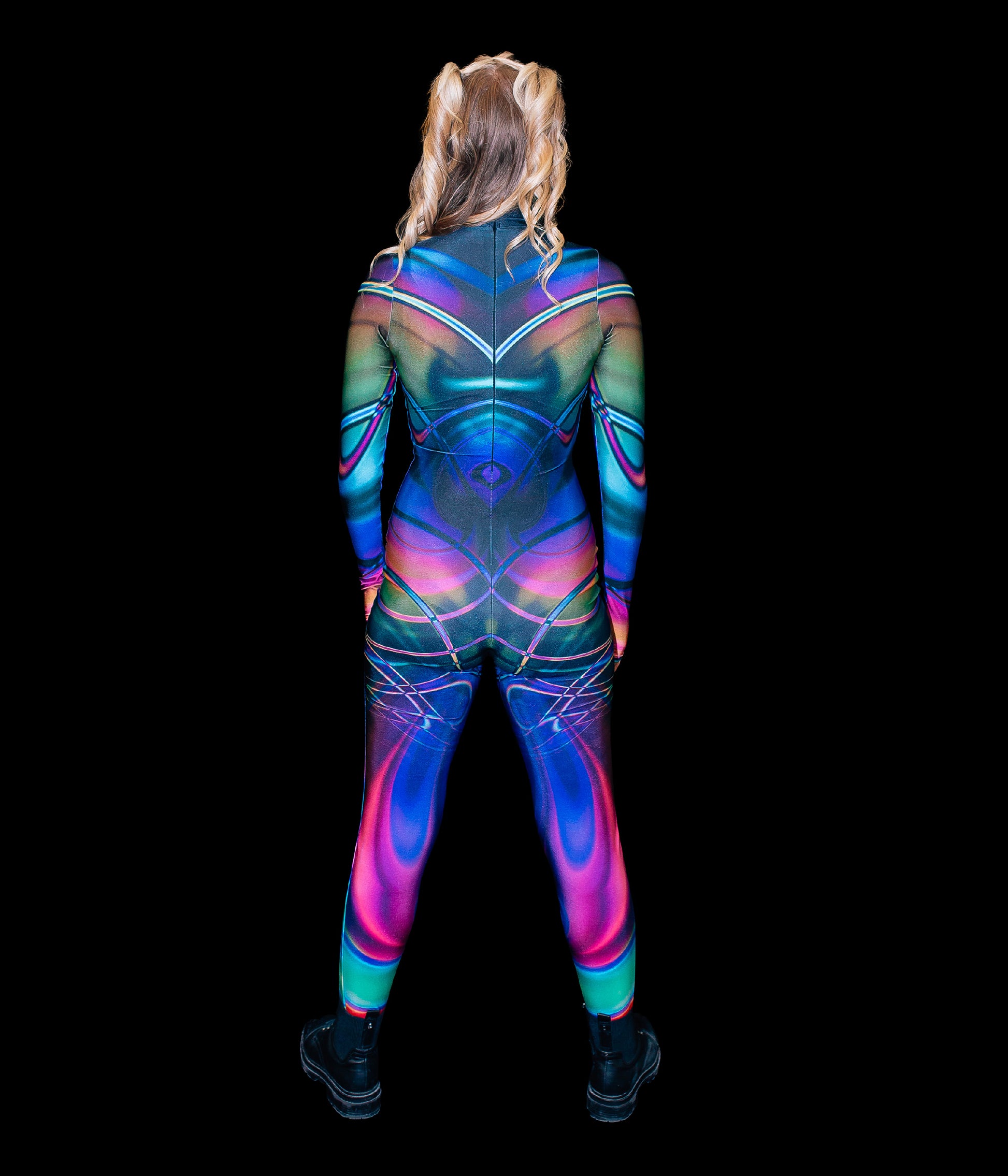 The EPIC Bodysuit is the perfect garment for all rave-goers and partiers. Made from our premium four-way stretch fabric, this bodysuit is incredibly comfortable and breathable, allowing you to move freely and express yourself without restriction. With a flattering fit in 11 sizes and a variety of designs, we've got you and your squad covered. Whether you're going to an EDM festival, a club, or just a house party, the EPIC Bodysuit is the perfect addition to your wardrobe.