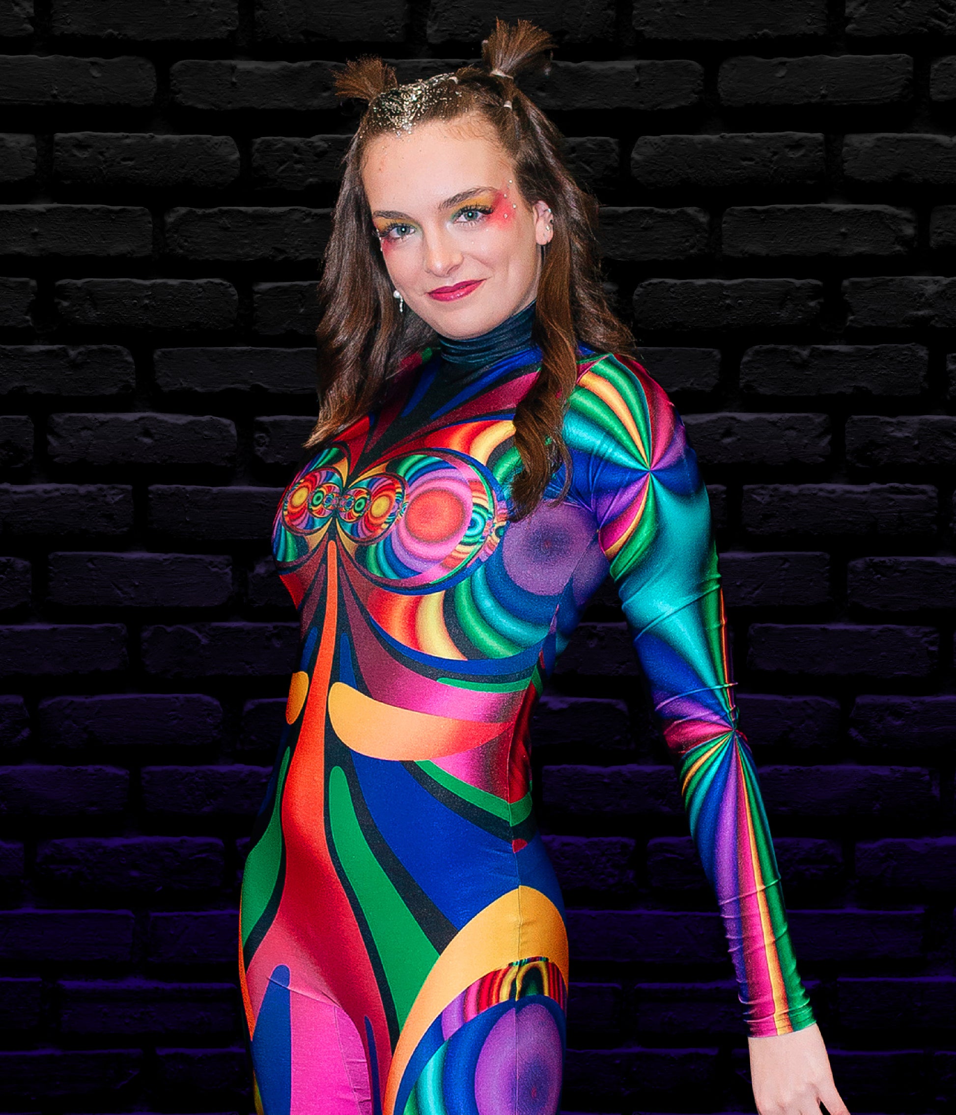 The EPIC Bodysuit is the perfect garment for all rave-goers and partiers. Made from our premium four-way stretch fabric, this bodysuit is incredibly comfortable and breathable, allowing you to move freely and express yourself without restriction. With a flattering fit in 11 sizes and a variety of designs, we've got you and your squad covered. Whether you're going to an EDM festival, a club, or just a house party, the EPIC Bodysuit is the perfect addition to your wardrobe.